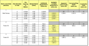 Example of Barnes Multi-Layer Soil Resistivity Table