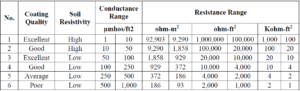 Table 3 – Coating Resistance Range