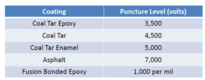 To determine AC fault voltages that puncture underground pipe coatings see table 5. These are estimates and are impacted by the condition of the coating.