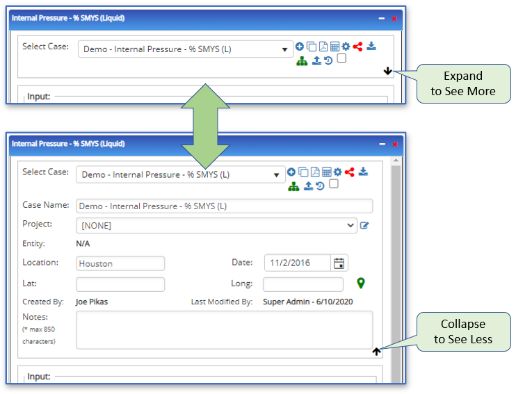 The case header directive can be expanded, or collapsed, per the user’s preference. In previous versions of Pipeline Toolbox, the free-text inputs in this section were the primary method for keeping track of the reason for the analysis, as well as for being able to find the case again.