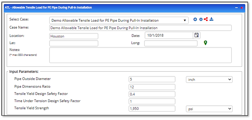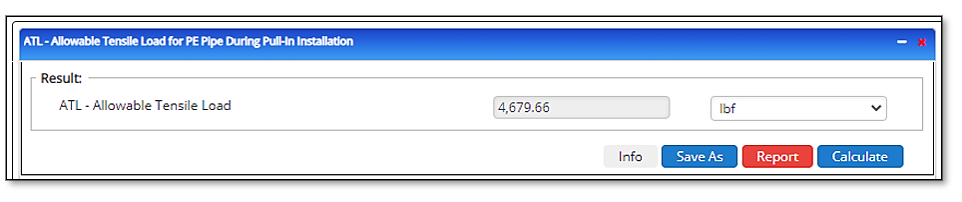 The ATL is the allowable safe pulling load that can be applied to a polyethylene pipe. If installation-applied stresses are too great, the polyethylene pipe may be damaged beyond use, or its potential service life may be compromised. Horizontal directional drilling may impose additional bending stresses while the pipe is under pull-in tension. Allowable tensile load values may need to be reduced accordingly.