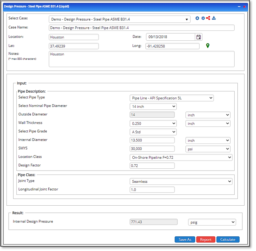 - Select the Design Pressure – Steel Pipe application from the Steel Pipe – Design and Stress Analysis module
