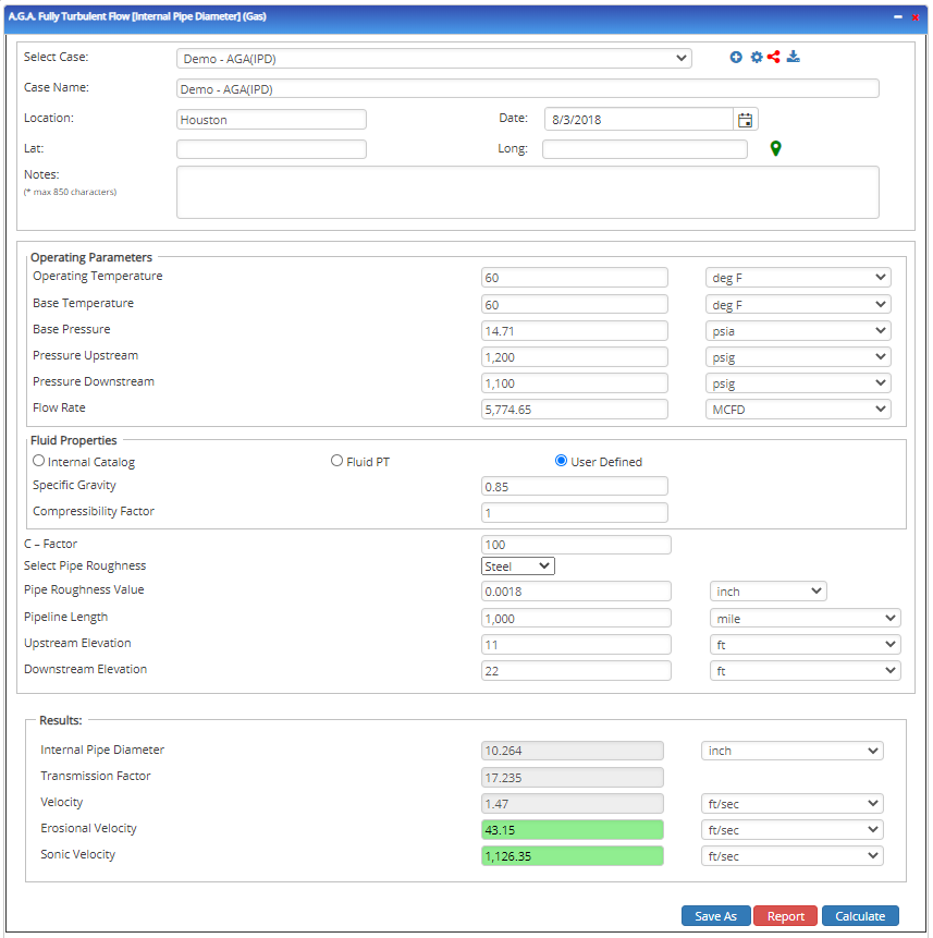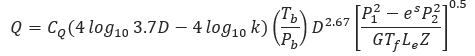 Similar to the Colebrook Equation, the AGA Equation uses a slightly modified transmission factor in order to obtain a value for the pressure drop using the General Flow Equation. The transmission value for the AGA equation is the following:
